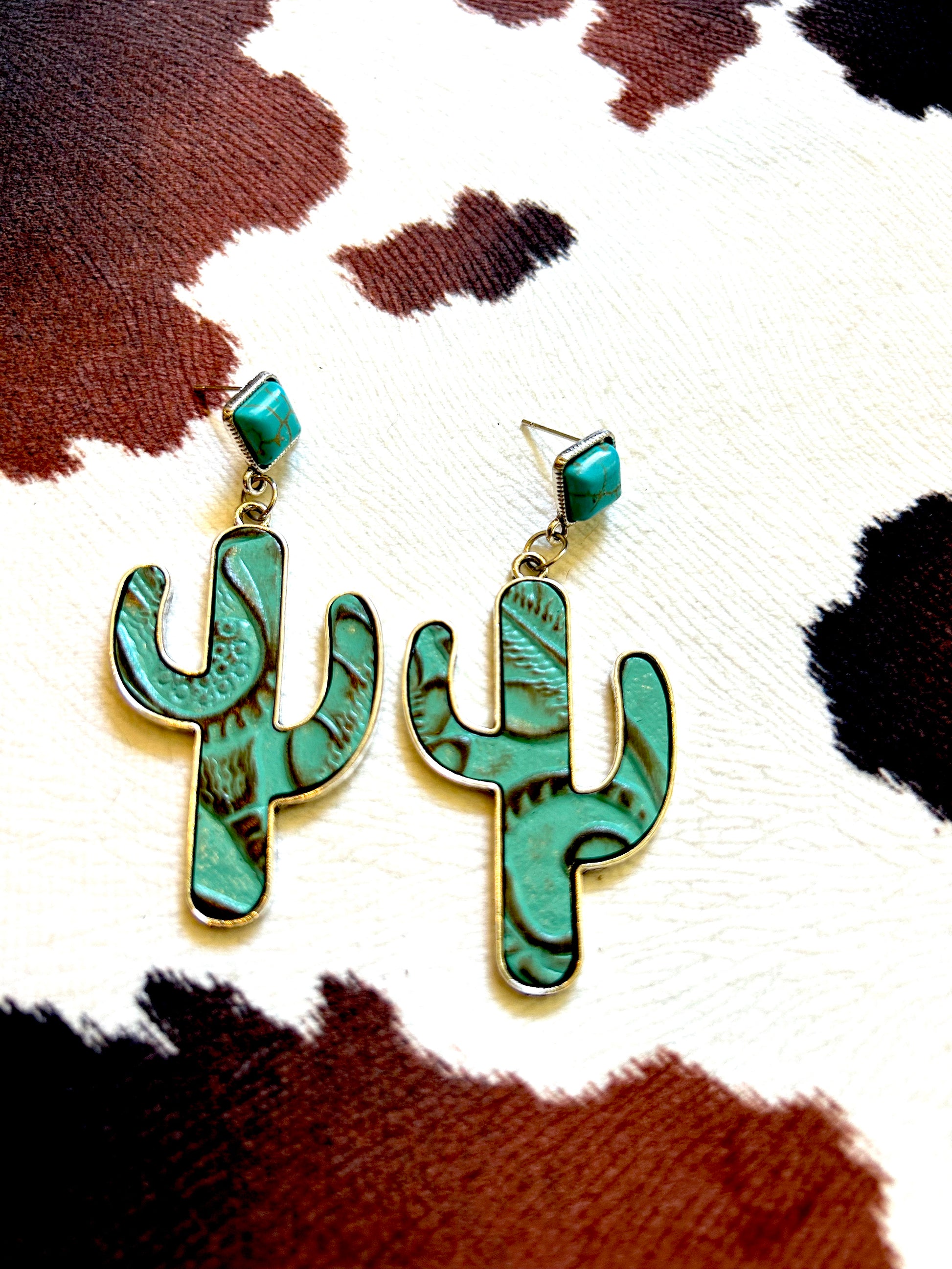 Ideal as a gift for yourself or a loved one who appreciates the rustic charm and elegance of western style, these earrings are a timeless addition that speaks to strength and natural beauty. Embrace the spirit of the desert and let these cactus embossed earrings add a touch of western flair to your adventures.