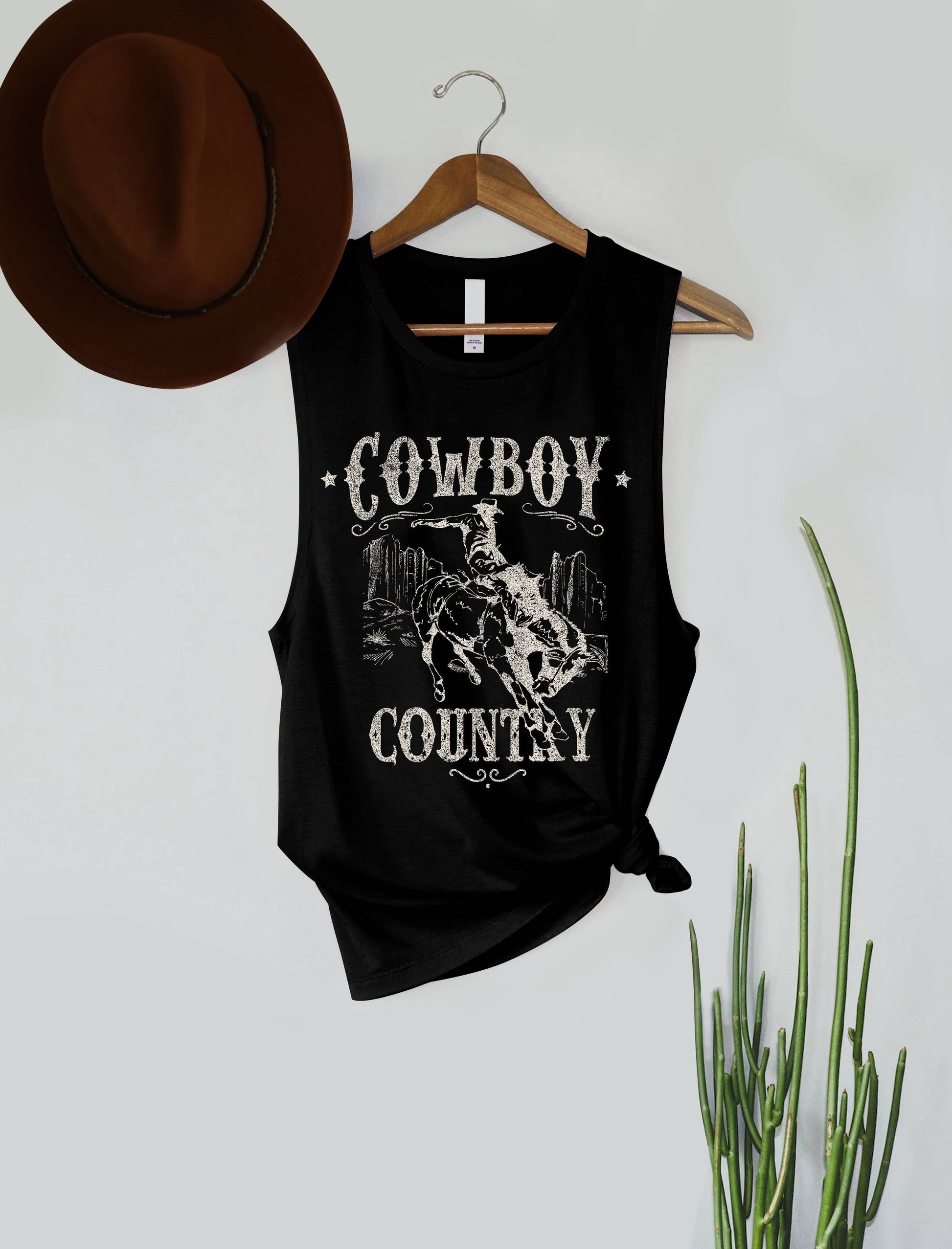 Saddle up in style with our Women's "Cowboy Country" Western Tank, designed for the bold and free-spirited. Featuring vintage-inspired cowboy artwork and Cowboy Country lettering, this tank brings a modern edge to classic Western flair.